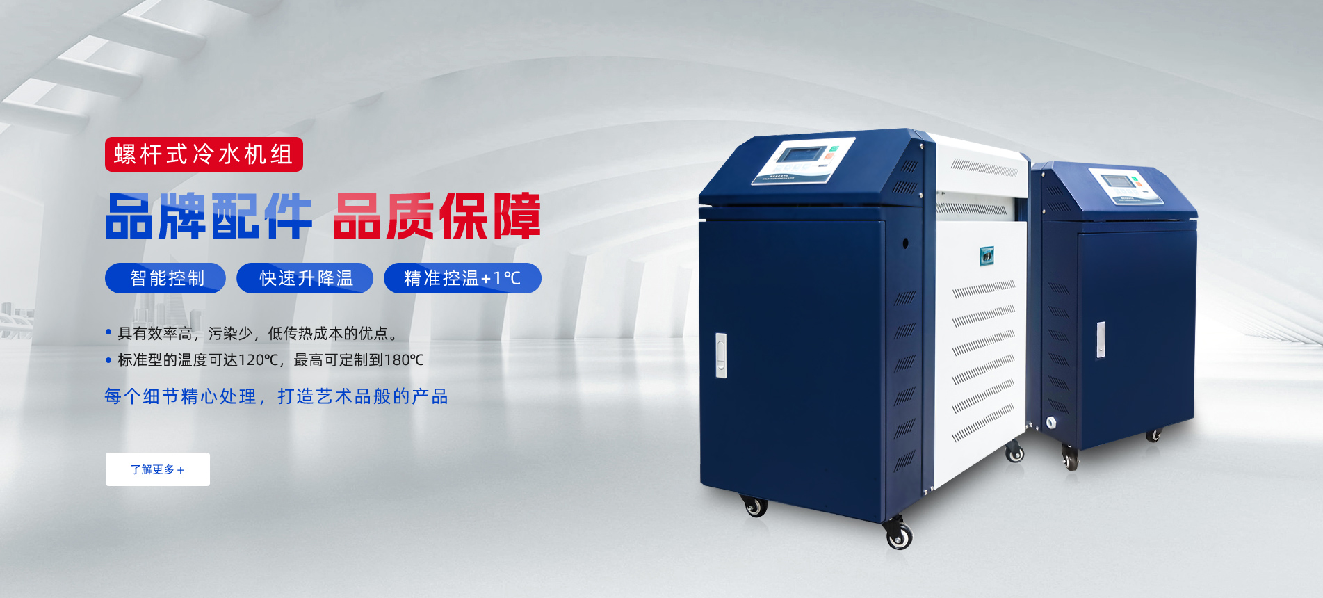 我們擁有先進的生產設備、優秀的產品質量、誠信的經營理念,在塑料機械、制冷、 機電自動化方面有著豐富經驗的研發和生產的專業團隊,在國內溫控設備制造行業 享有很高的聲譽。